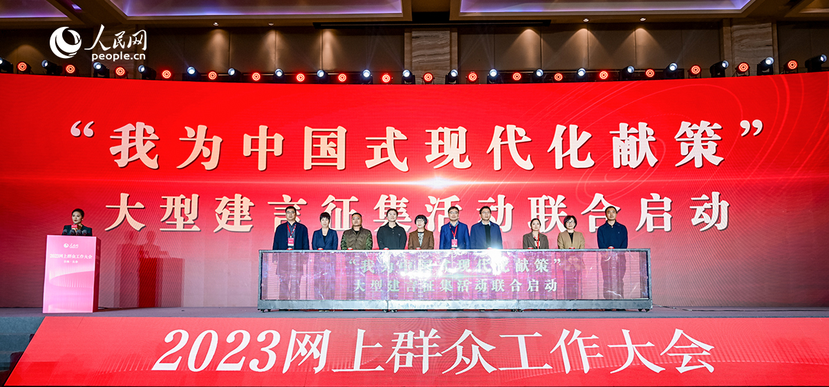 在2023网上群众工作大会“网上群众工作平台的新时代新发展”分论坛上,人民网联合大江网、红网新媒体集团、四川新闻网传媒集团、长城新媒体集团、津云新媒体集团、西部网、南京报业传媒集团、长江日报共同发起的“我为中国式现代化献策”大型建言征集活动正式启动。